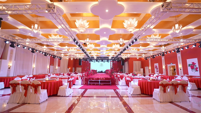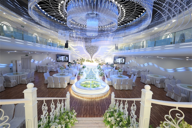 皇宮廳—金碧輝煌、皇宮式裝修,面積1038㎡,層高8.6米,配備愛情階梯、軌道威亞、二層觀禮臺、浪漫燈光秀、旋轉(zhuǎn)升降舞臺、頭頂天幕連接開合大屏??沙薪?0桌的大型宴會,也可舉辦600人的大型會議;還可用作會展、車展場地,每逢節(jié)假日還為市民上演文藝節(jié)目。